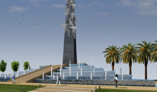 The King Hamad Memorial is designed in a stepped formation, focused towards a vertical element representing the soldiers defending the homeland and planting the country's flag. Access to the memorial is provided through lateral entrances adorned with greenery, creating an intimate atmosphere and framing the central space.