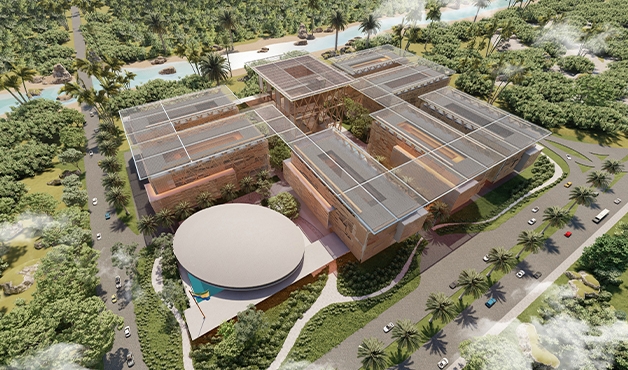 The main access leads to a central area where the focal point is the main building, symbolizing the heart of government operations. Adjacent to this, the conference area takes on an elliptical shape, evoking a sense of unity and collaboration. The entire complex is strategically organized to accommodate various ministries, each contributing to the overall efficiency and synergy of the government operations. The elliptical shape of the conference area not only creates a striking architectural feature but also promotes an inclusive environment for discussions and decision-making. The Ministerial Complex stands as a beacon of governmental innovation in Gabon, a testament to thoughtful design that fosters collaboration, efficiency, and a sense of national pride.