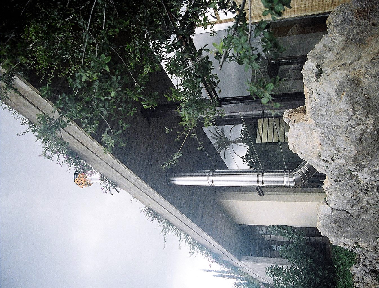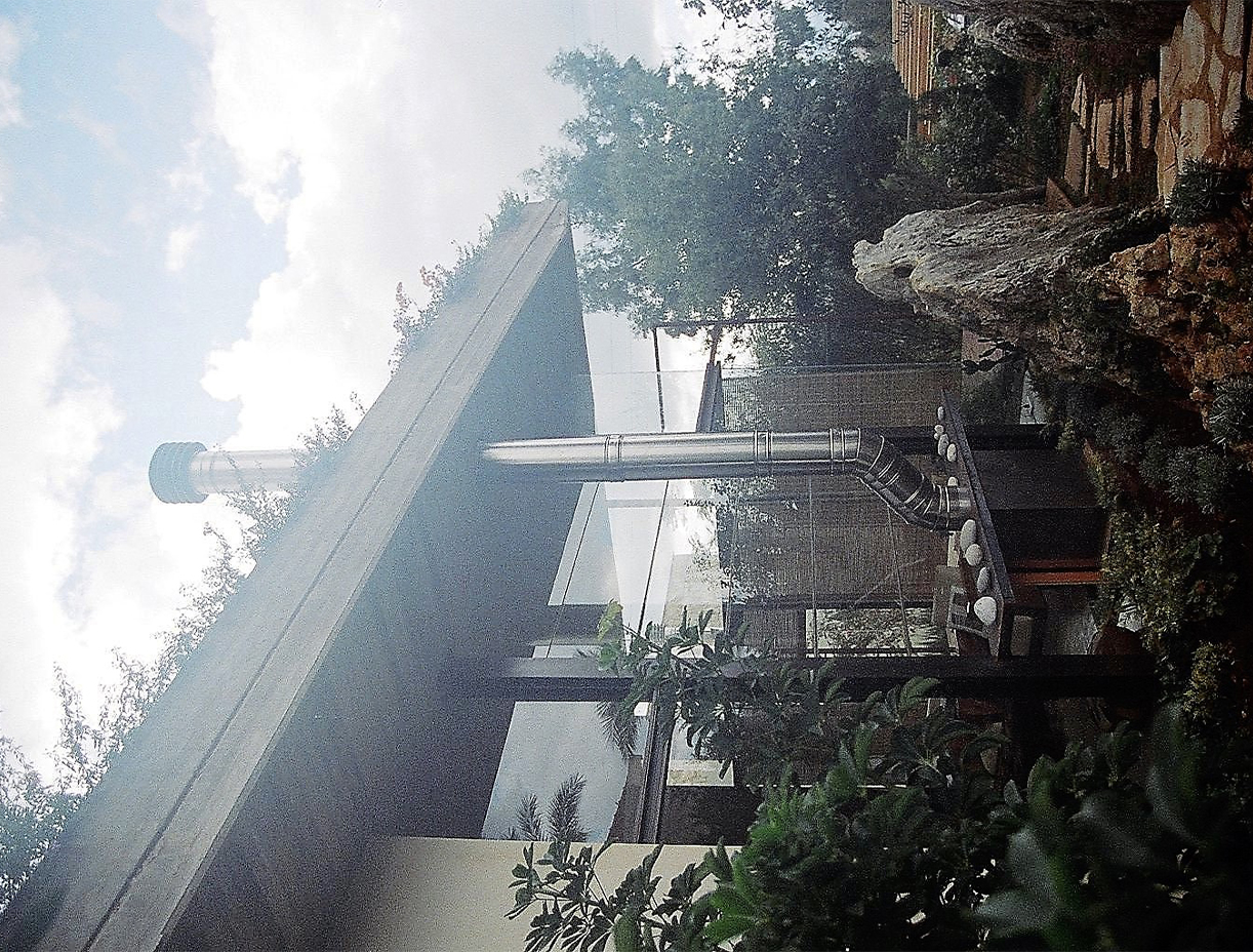This architecture represents a departure from conventional design principles, seeking to create a distinct identity by consciously rejecting traditional links with the landscape. Instead, it embraces rocks, trees, and water as integral elements of the spatial experience, challenging the boundaries between the built environment and nature. At the core of this design is an interactive wall that serves a dual purpose: transforming into an aqueduct that dynamically pours water and incorporating functional cavities within key living spaces such as the kitchen, office, and rooms. This innovative feature not only adds a sensory and interactive dimension to the architecture but also blurs the lines between aesthetics and functionality.