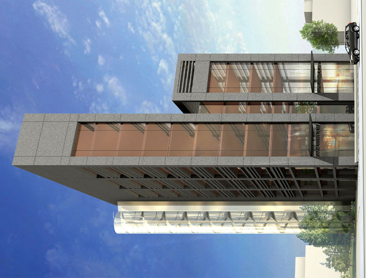 The Bauchrieh Business Center in Lebanon is envisioned as a dynamic hub combining functionality and aesthetic appeal for a cutting-edge business environment. Comprising office building and showrooms, the center boasts a distinctive architectural design, defined by two shapes – one horizontal and the other vertical. Positioned strategically to face the highway, the structures not only catch the eye but also create a prominent presence within the urban landscape.
